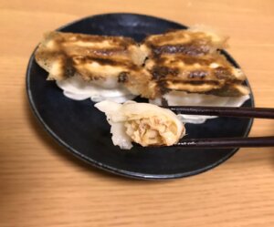 タレを付けなくても美味しく食べ応えがあり。食べる価値あり。油も水も使わず簡単に餃子を焼くことができるので、ぜひ一度食べてみてください。