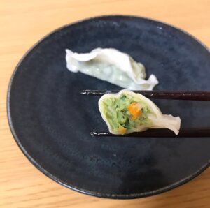 緑色が透けているコンディショニングギョーザは、薄めの皮で包まれた野菜がメインとなっています。