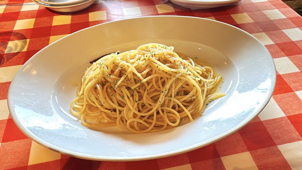 近くのイタリアンにすぐに入れて、ペペロンチーノを食べる。
