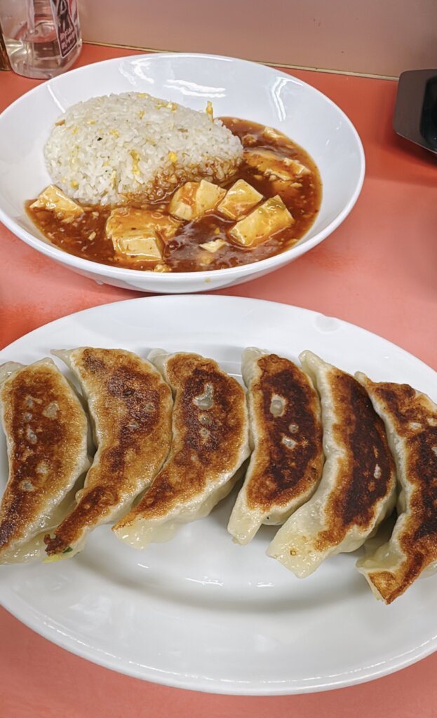 餃子と、初めて見た半マーボーチャーハンを注文。
