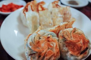 1皿4個ですが、ひとつが大きいので食べごたえありますよ。私はシイタケ焼き餃子が不動のNo.1。